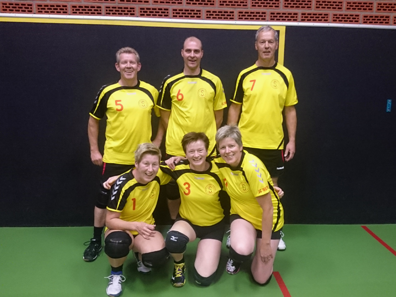 Het team van mix 1 bestond uit: Frits (heet eigenlijk Alfons), Alfons (heet echt Alfons), Jan (heet gewoon Jan), en de dames: Melanie (uit Deventer), en Joke en Marijke beiden halfweg Broekland. Mooi dat al deze dames toch bij Wesepe volleyballen!