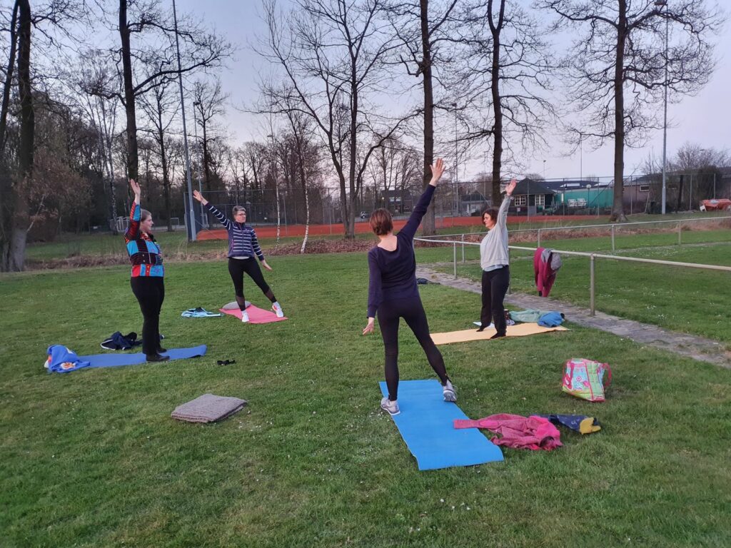 “Er zijn drie trainsters die elk een bepaalde les geven,” vertelt Henrike Flierman, een van de deelneemsters van de avondfitgroep en bestuurslid van de afdeling gymnastiek. “Toos Elfrink verzorgt de yogalessen. Zij sportte eerst met ons mee, maar toen onze vorige yogadocente stopte, gaf zij aan het over te willen nemen.” Ellis Denekamp is de aerobicsinstructrice en Bieb Roelofsma verzorgt het onderdeel sport en spel. “Bieb is ook volleybaltrainster binnen de club. Voor onze groep bedenkt ze allerlei gekke spelvormen en krachtoefeningen. Ook doen we weleens een potje volleybal. En Ellis geeft aerobics, maar soms zet ze ook een circuitje met oefeningen uit. Kortom, het is heel gevarieerd.”