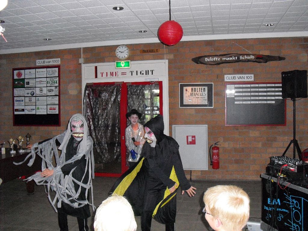 ’s Avonds genoot het publiek van twaalf acts tijdens de bonte avond. Alle optredens – playback, dansjes en zelfs een toneelstukje – hadden iets te maken met het kampthema ‘griezel’. Er waren veel goede optredens, maar er kon er natuurlijk maar één de winnaar zijn. De jury, bestaande uit Tony Mensink en de afscheidnemende leiders Gejo Rouweler en Marjon van Mullem, overhandigden uiteindelijk aan Michael Jackson en twee zombies de eerste prijs. Een aantal leiders sloot vervolgens de bonte avond af met een (te) spannend verhaal over ‘de slachter van Holten’. Gelukkig zijn we hem dit weekend niet tegengekomen…