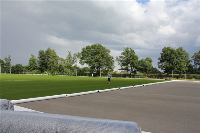 Na enige vertraging is gestart met het leggen van de kunstgrasmat op sportpark de Muggert. Met man en macht wordt er de komende dagen hard gewerkt door de firma CSC om het kunstgrasveld op tijd klaar te krijgen om er direct na de kermis op te gaan trainen. De verlichting rondom het veld komt iets later dan gepland maar met de komst van LED verlichting is ook SC Wesepe duurzaam bezig.