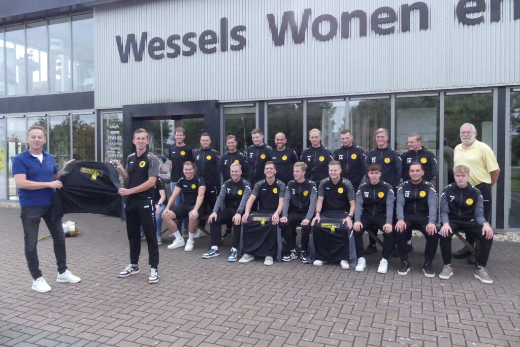 Dankzij Wessels Wonen en Slapen lopen de heren van het 1e elftal er weer pico bello bij in hun mooie nieuwe trainingspakken. Een tijdje geleden was de officiële overhandiging waarbij alle spelers aanwezig waren om Ronald Wessels te bedanken.