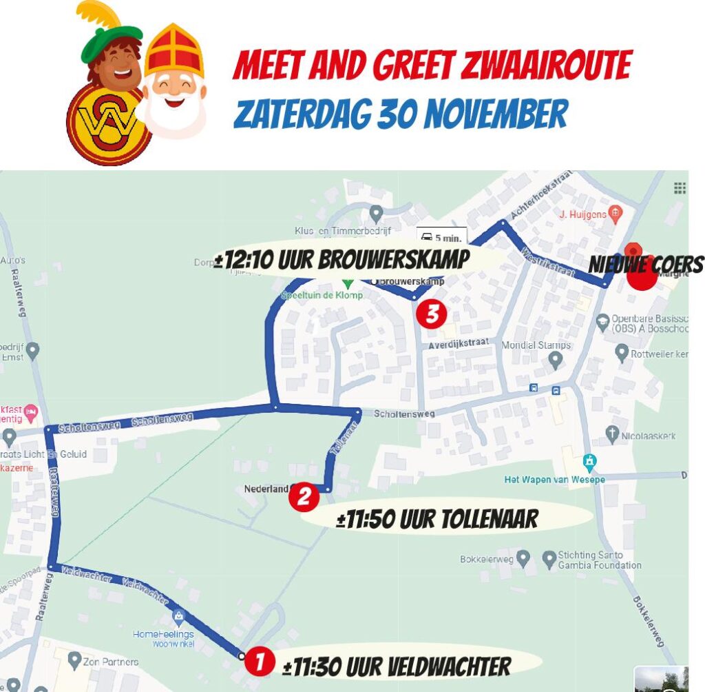 Zaterdag 2 december krijgen de jeugdleden (basisschoolleeftijd) weer hoog bezoek van Sinterklaas en zijn pieten. Bij goed weer rijden zij om 11.30 uur naar 3 punten in het dorp, de kinderen kunnen dan zwaaien en zingen. Tevens zijn er op die 3 vaste punten een meet and greet met Sinterklaas en zijn pieten.