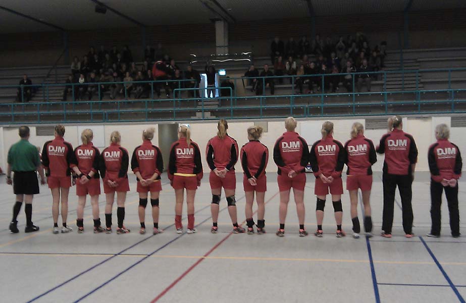 Daarna brak een moeilijke fase aan. Kwiek ging steeds offensiever verdedigen en zette daarbij Dorien vast. Wij hadden moeite om de ruimte die daardoor ontstond te benutten. Veel balverlies, weinig kansen en geen doelpunten waren het gevolg. Kwiek kwam langzaam maar zeker dichterbij. Bij 16-19 scoorden wij eindelijk weer en dat luchtte enigszins op. Er was toen een minuut of vijf te spelen. Kwiek kreeg een strafworp en kon dus het gat weer verkleinen naar drie. Maar Irene wist de poging te keren (één van de vijf penalty’s die ze vanmiddag tegenhield!). Even later maakte Kwiek echter alsnog de 17-20. Daarna maakten we met een afstandsschot en een snel uitgespeelde aanval een eind aan de spanning. Kwiek scoorde tussendoor ook nog, maar de overwinning was veilig: 19-22. Na het eindsignaal mocht Kwiek nog een strafworp nemen, maar ook deze was een prooi voor Irene. Een mooie afsluiter.