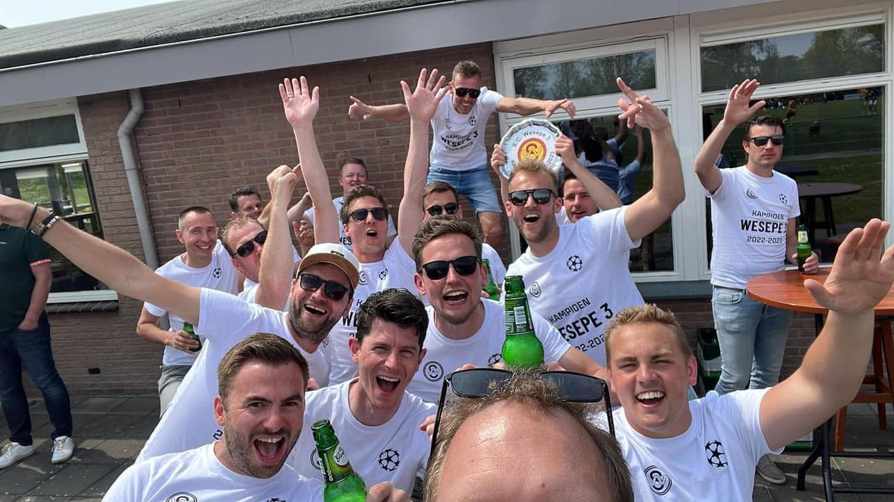 Tot slot was er ook bij de voetbal dit seizoen een echte kampioen te bewonderen. Met zeven punten meer dan concurrent Lettele 4, slechts twee nederlagen in 22 wedstrijden en een doelsaldo van +86 (!) stak Wesepe 3 in de 7e klasse met kop en schouders boven de rest uit. De titel was een feit op zondag 14 mei. In Deventer werd Koninklijke UD 3 die dag met 2-5 opzijgezet. Maar het feest werd een week later pas echt groot gevierd. In de allerlaatste wedstrijd van het seizoen haalde de voetballers van het derde nog eenmaal alles uit de kast. Broekland 4 kreeg met 8-0 alle hoeken van het veld te zien. Na het laatste fluitsignaal barstte het feest in de kantine van de Muggert goed los.