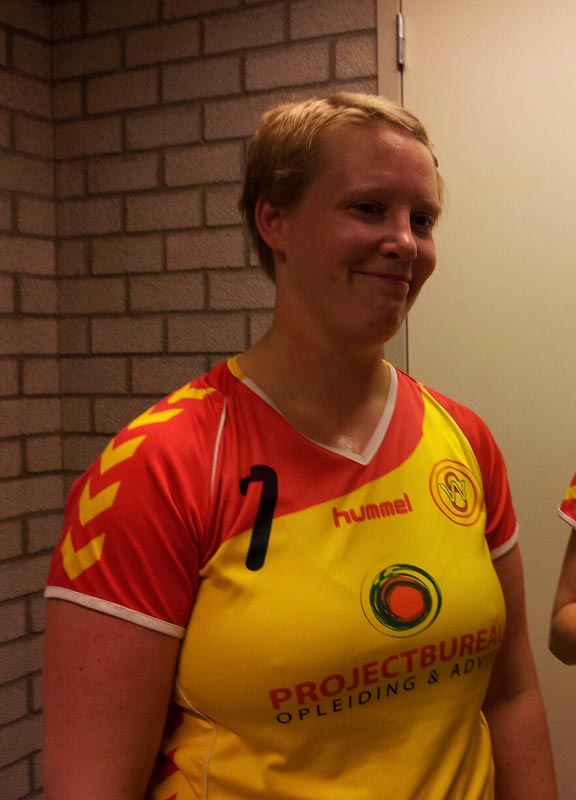 2013-04-28 Promotiewedstrijden - Heleen b+Heleen heeft op prachtige wijze afscheid genomen als handbalster: met een kampioenschap én een promotie. Vandaag waren echt haar allerlaatste seconden als handbalster. Wij vinden het allemaal ontzettend jammer dat ze stopt, want haar inzet, inzicht, maar vooral enthousiasme en vrolijkheid zullen we echt gaan missen. Heleen, nogmaals ontzettend bedankt voor de afgelopen jaren!
