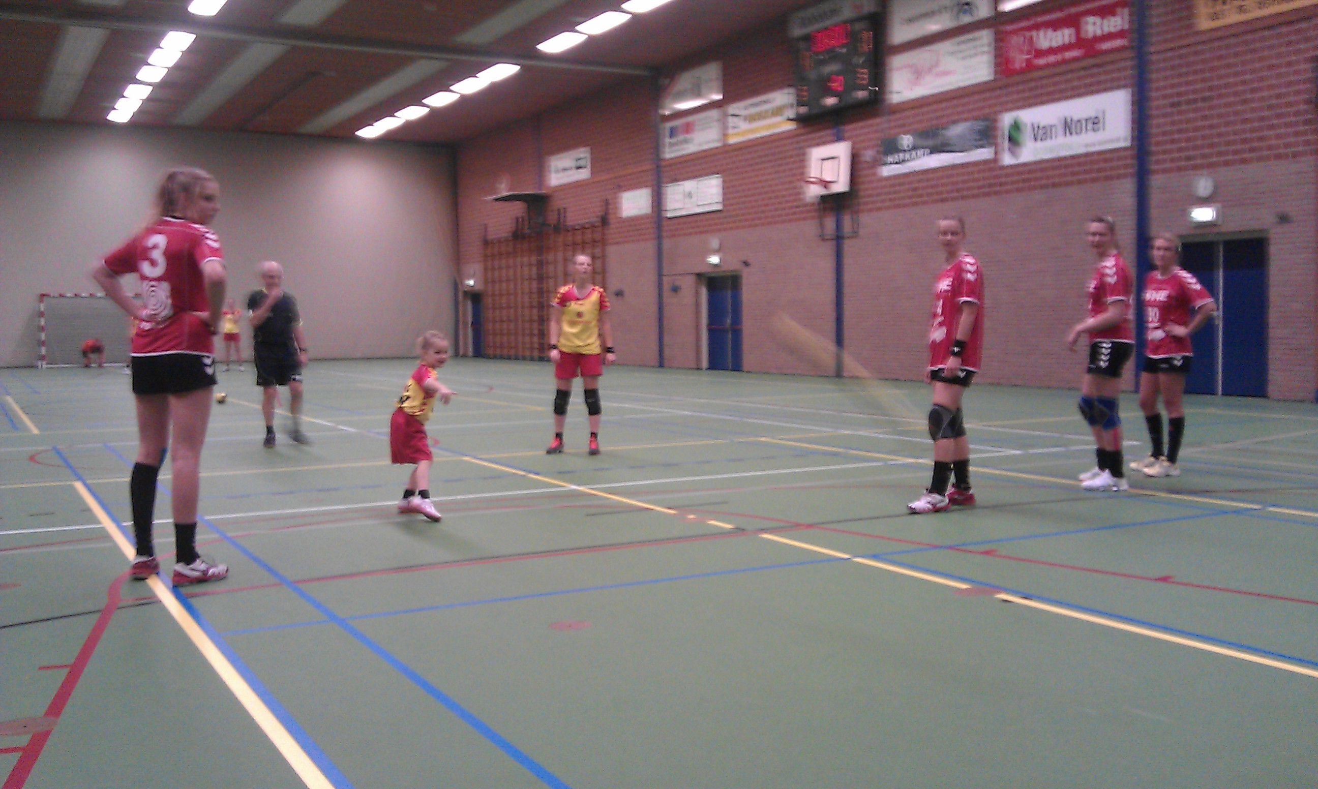 Dan de wedstrijd. De eerste pogingen aan beide kanten misten doel. De speelsters van Dalfsen gooiden enkele ballen erg hoog over en hadden duidelijk moeite met onze harsloze bal. Aan de andere kanten misten wij scherpte in onze eerste pogingen. Toch openden wij de score, al was daar een strafworp voor nodig. Daarna waren we los en liepen we gestaag uit. Op een gegeven moment was het zelfs 11-3 en leek het een soortgelijke ruststand als vorige week te worden (12-3), maar vanaf dat moment gaven we het initiatief uit handen.